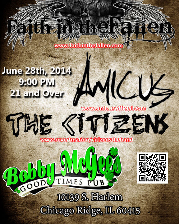 You don’t want to miss this show. A killer lineup of The Citizens, Amicus, and yours truly Faith in the Fallen. FITF has had the pleasure of sharing the stage with both of these bands in the past and they do not disappoint! Come on out and support the local music scene on 6/28 at Bobby McGee’s in Chicago Ridge. You can also check out the event on Facebook. Let us know you are coming!